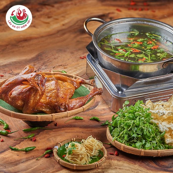 Lẩu Gà Ớt Hiểm 109 đã từ lâu khẳng định vị thế của mình như một điểm đến tuyệt vời cho những tín đồ ẩm thực ở Sài Gòn. Quán nổi tiếng với hương vị đậm đà, thơm ngon và quy trình chế biến tỉ mỉ. Thịt gà được chọn lọc kỹ lưỡng, đảm bảo tiêu chuẩn vệ sinh an toàn thực phẩm. Sau khi chiên sơ, thịt gà trở nên ngon ngọt và mềm mại hơn, vượt xa so với loại gà công nghiệp thường thấy. Kết hợp với ớt hiểm và kỳ tử, nước lẩu mang đến hương vị đặc trưng vô cùng hấp dẫn. Đặc biệt, nước chấm được pha chế hoàn hảo từ nước mắm, muối và chanh, tạo nên sự hài hòa dễ chịu cho món ăn.