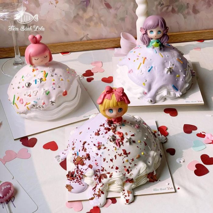 Điểm thú vị của bánh công chúa kem chảy tại LaLa nằm ở khoảnh khắc rút túi kem – khi dòng kem mượt mà từ từ chảy xuống, tạo nên chiếc váy rực rỡ bao quanh búp bê công chúa đặt ở trung tâm. Tiệm hiện cung cấp hai kích thước linh hoạt gồm size Bento 10cm nhỏ xinh và size bánh kem lớn, phù hợp cho cả bữa tiệc gia đình ấm cúng lẫn các buổi tiệc đông người.