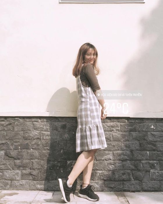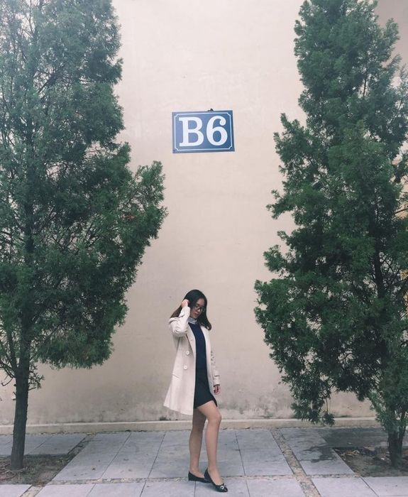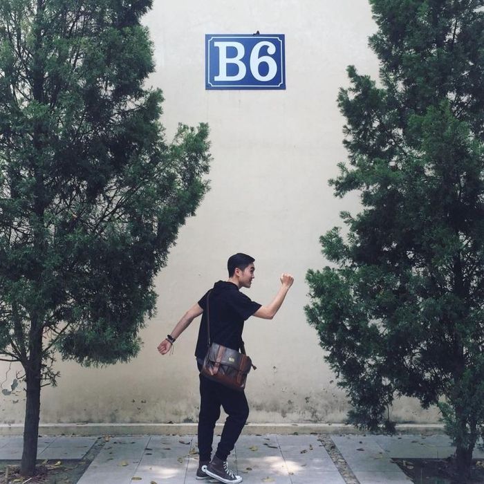 Bức tường giảng đường B6 đã trở thành một địa điểm quen thuộc cho các bạn sinh viên tại trường Báo khi tìm kiếm những bức ảnh đẹp. Với hai cây thông cao vút và phông nền xanh mát phía sau, nơi đây luôn thu hút sự chú ý từ đông đảo sinh viên.