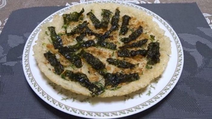- Thành phẩm: Cơm cháy rong biển chay sau khi chiên xong sẽ có mùi thơm đặc trưng của rong biển và mè. Cắn vào miếng cơm, bạn sẽ cảm nhận được vị giòn tan, rất hấp dẫn. Bạn có thể ăn cùng tương ớt, tương cà hoặc kho quẹt để món ăn thêm phần hấp dẫn.