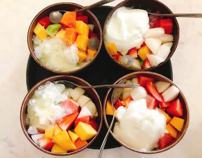 Món Tráng Miệng Độc Đáo sử dụng nhiều loại trái cây tươi ngon, mang đến sự đa dạng và hấp dẫn từ những thìa đầu tiên cho đến khi bát hoa quả dầm đã cạn. Quy trình chuẩn bị trái cây cũng đảm bảo tính an toàn và chất lượng, từ việc lựa chọn trái cây chín tới, có nguồn gốc rõ ràng. Mỗi miếng trái cây được cắt nhỏ đồng đều, kết hợp hoàn hảo với sữa chua và đá bào, tạo nên một món ăn giải nhiệt tuyệt vời cho mùa hè.