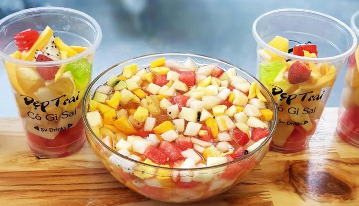 Tại Đông Dương Fruits, bạn sẽ được trải nghiệm ly hoa quả dầm tươi mát với mức giá phải chăng. Quán nổi bật nhờ sự phong phú về trái cây, từ thanh long, thạch dừa, xoài cho đến dưa hấu và nho xanh. Đặc biệt, khay dâu tây thái lát mỏng với màu đỏ tươi mát đang thu hút sự quan tâm từ những tín đồ yêu thích hoa quả.