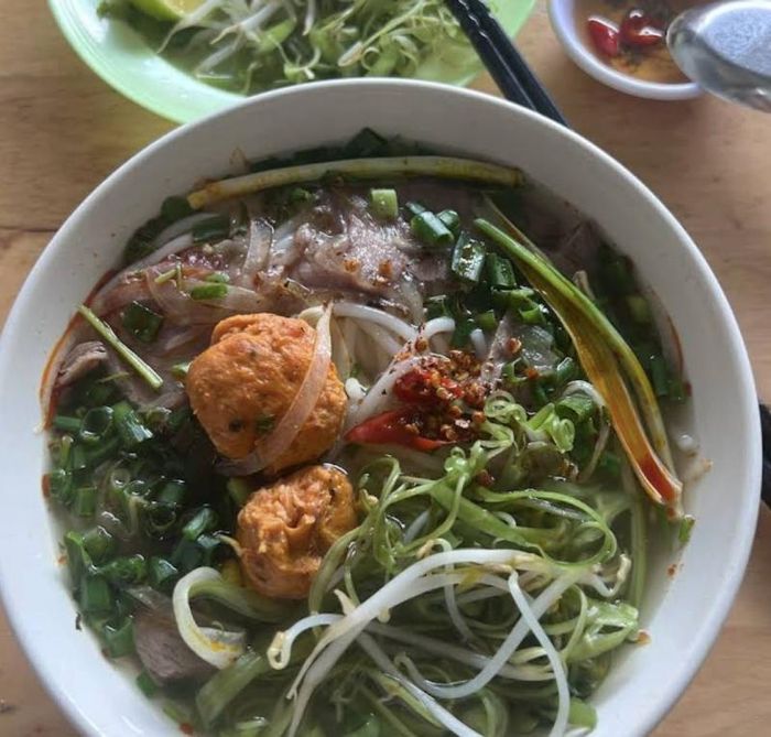 Nước dùng của bún bò tại đây rất đậm đà, gia vị hòa quyện hoàn hảo, chỉ cần thêm một chút mắm ngọt là đã đủ vị. Tóp mỡ và da heo giòn rụm đúng chuẩn Huế, rau ăn kèm tươi giòn, sợi bún dai và tơi. Thịt bò thái dày, mềm, thấm gia vị hoàn hảo, hòa quyện với bún và topping tạo nên một tô bún nóng hổi cực kỳ hấp dẫn, khiến ai cũng phải xuýt xoa vì hương vị Huế.