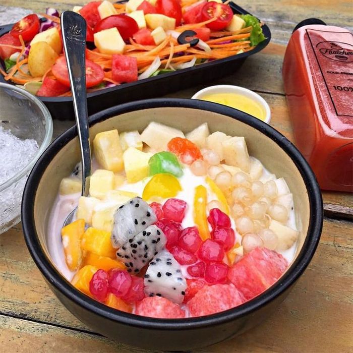 - Thỏa sức sáng tạo bằng cách chọn thêm các loại hoa quả yêu thích, với nhiều màu sắc và hương vị đa dạng để món ăn vừa ngon vừa đẹp mắt.