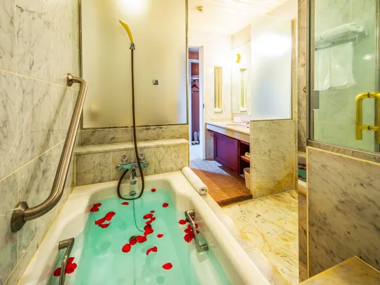 The exterior is reminiscent of a medieval castle. Enjoy nature with our open air baths and natural hot spring.