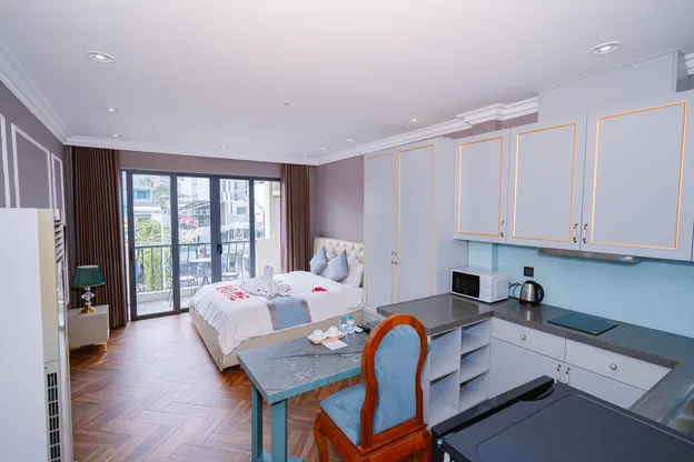 PHÒNG NGHỈ ĐẲNG CẤP : Các phòng nghỉ tại HOME được thiết kế tinh tế và trang bị đầy đủ tiện nghi như : Bếp,lò vi sóng,tivi 4k..v..v..v.. hiện đại, mang đến cho bạn không gian thoải mái và thư giãn nhất. Từ ban công, bạn có thể thưởng ngoạn cảnh biển tuyệt đẹp và cảm nhận gió biển mát lành.