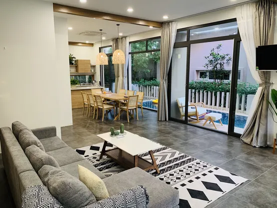 - Villa tiêu chuẩn có sức chứa 12 người lớn và 4 trẻ em. Phụ thu tối đa cho 25 khách.